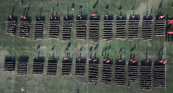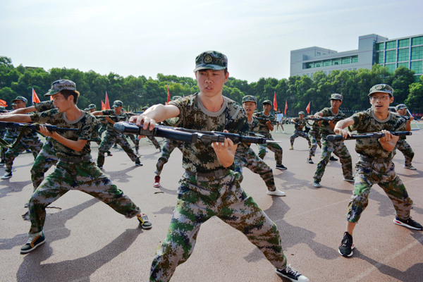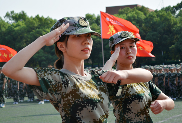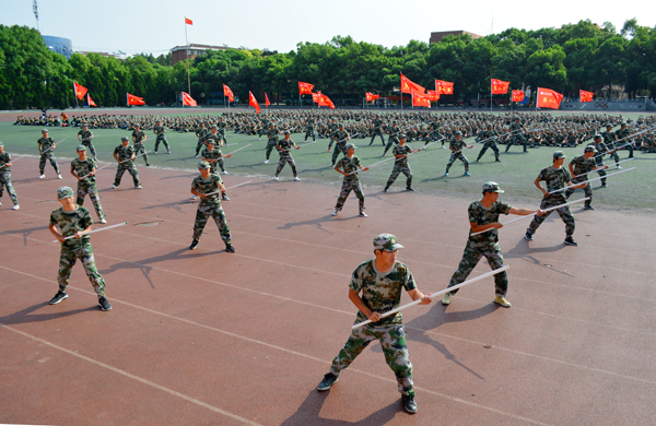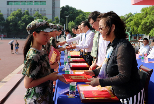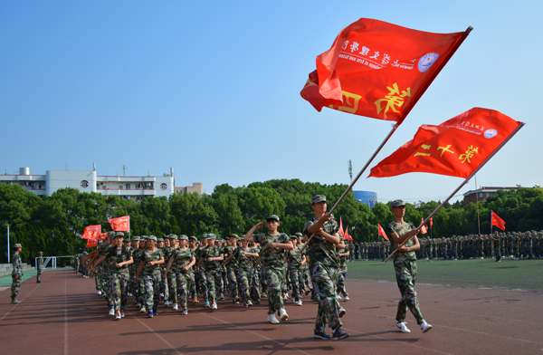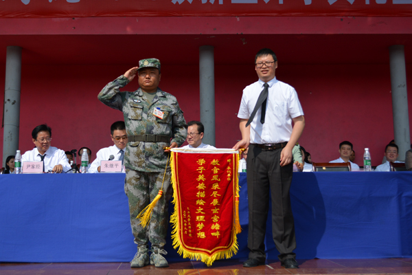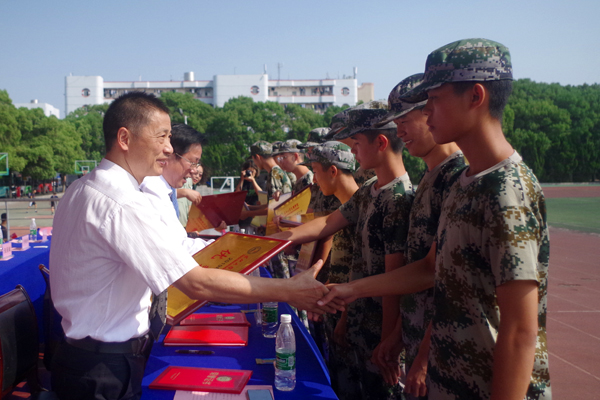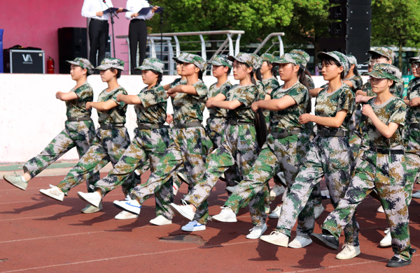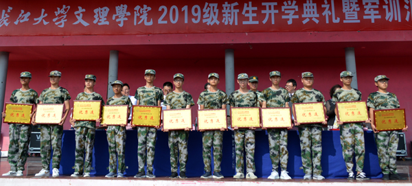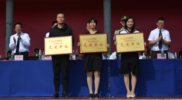 典礼上还进行了军训汇报表演。全体2019级新生组成24个军训连,向全院师生汇报14天的军训成果。队列表演、匕首操、刺杀操、棍术等表演赢得了全场阵阵掌声。尹家经宣读表彰决定,对军训过程中各方面表现优秀的集体和个人进行了表彰。院领导为获奖的集体和个人颁奖。孙细望代表学院向军训承训单位赠送锦旗。
