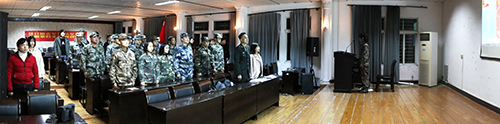 成立大会上,2014级国贸专业李爱杰、2013级市销专业蒋卓等作为老兵代表发言。随后,举行了庄严的宣誓仪式。30名同学身着军装,站姿英武,站在鲜红的院旗下,高声诵读入团誓词:“重新回到大学校园,我仍将以一名军人的标准严格要求自己,勤奋学习,拼搏进取……”