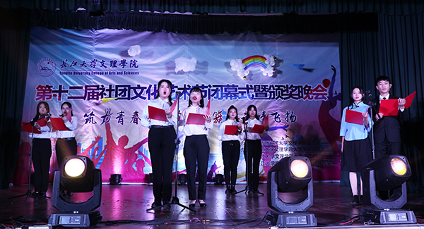 本网讯 (学生记者 王晶 贺晶晶 见习记者 谭汪洋) 12月7日晚,我院第十二届社团文化艺术节闭幕式暨颁奖晚会在城中校区工会三楼举行。副院长李琴、郭睦庚,党委副书记孙细望出席观看。