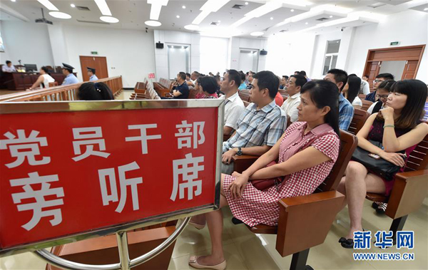 福州长乐的国土系统党员干部在市法院旁听某乡镇土地村建分管领导涉嫌职务犯罪案件的庭审(2016年9月27日摄)。新华社记者宋为伟摄