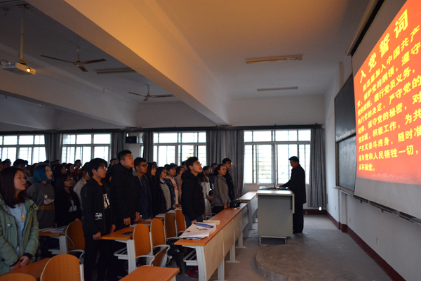 “我志愿加入中国共产党,拥护党的纲领,遵守党的章程,履行党员义务,执行党的决定,严守党的纪律……”党课在全体入党积极分子齐声诵读入党誓词中结束,坚实有力的朗读声在教室里久久回荡。