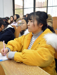 同学们边听边记