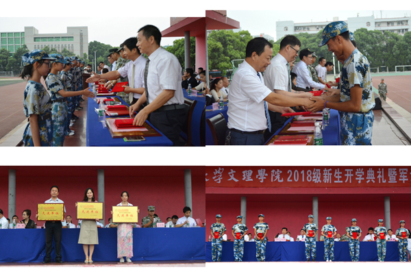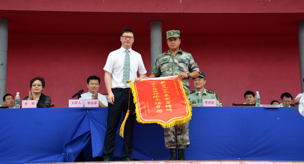 典礼上,郭睦庚宣读表彰决定,对军训过程中各方面表现优秀的集体和个人进行了表彰。院领导为获奖的集体和个人颁奖。孙细望代表学院向荆州区狼牙训练基地赠送锦旗。