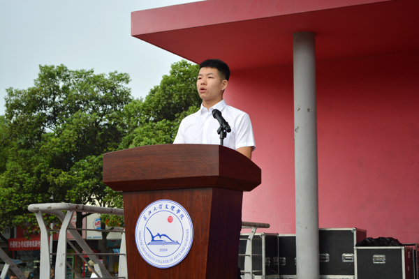 经济与法学系国贸5161班李爱杰代表老生与2018级新生分享了自己的大学生活,深情回顾了自己的成长与蜕变。他寄语学弟学妹们要坚定理想信念,确立奋斗目标,增强学习意识、勤于实践、敏于思考、敢于创新,全面提升综合素质,脚踏实地,做一个无愧于时代的有为青年。