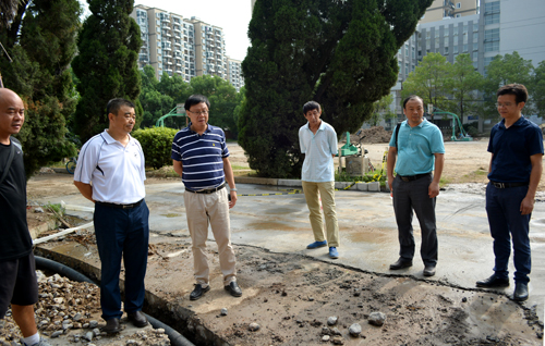周从标(上图右一、下图左二)在暑期维修改造施工现场检查指导工作