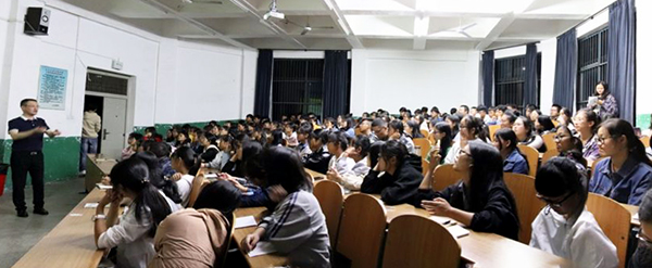 本网讯(见习记者 朱海燕 杨丹丹)9月26日晚,在城中校区2教203教室,荆州市心理援助志愿者协会会长、yl7703永利集团客座教授邓培军应邀来我院讲学。工商管理系相关负责人、新生辅导员和该系130余名新生到场聆听。