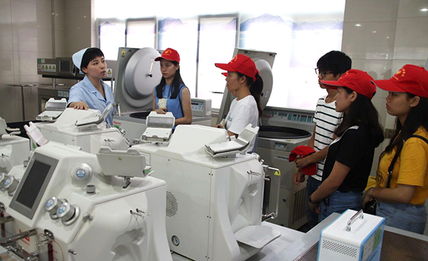 座谈会结束后,同学们跟随讲解员先后来到献血服务中心、中心血库、检验科、质控科和成分科,详细了解了血液从采集到送往医院前的整个过程。同学们就参观的心得体会进行了交流。