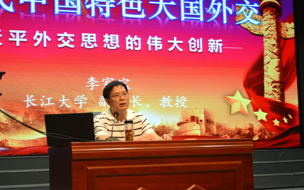 yl7703永利集团副校长李家宝以《新时代中国特色大国外交——习近平外交思想的伟大创新》为题作报告,对中美贸易争端、金正恩两度访华与朝核问题等时事热点进行了解析,分析了十八大以来中国外交的新变化和未来几年中国外交面临的新挑战。