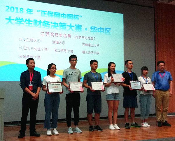 本网讯(通讯员 张茂惠子)6月10日,从刚刚结束的2018年“正保网中网杯”大学生财务决策大赛华中区现场传来喜讯:我院工商管理系吴越等5名同学组成的代表队夺得华中区比赛二等奖。