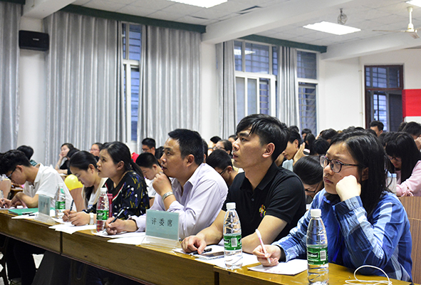 本网讯(见习记者 吴庆慧 夏承茜)5月10日晚,在西校区4教300教室,第十二届“泮池五月风”科技文化节之数学竞技“大武台”闭幕式暨颁奖典礼举行。300余名师生现场观摩比赛。医药与护理系党支部副书记祝峰,数学教研室王春鸽、李莹莹、胡传峰老师担任评委。