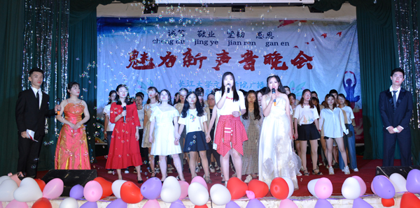 本网讯(记者 吴秀丽)5月20日晚,由我院广播台主办的“魅力新声音”文艺晚会在城中校区工会大厅举行,广播台全体成员与来自各系部的百余名师生共同观看节目。