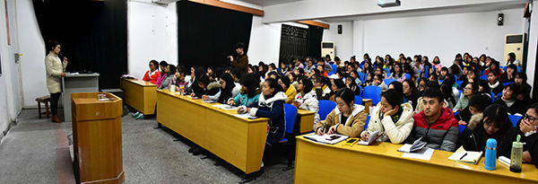 本网讯 (见习记者 马玉婷 吕鑫 司琦)11月30日晚,荆州教育学院学前教育系副主任方帆副教授应邀来我院,以《学前教育专业幼儿教师资格考试面试技巧》为题作学术报告。