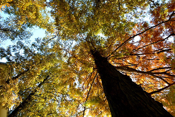 阳光下,高高的水杉林里流转着一抹愉悦的生命气息。