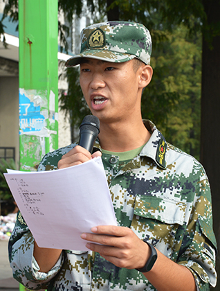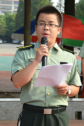 刘磊在授旗仪式上讲话。他要求各系部提高认识、统一思想,切实加强对新生军训工作的组织领导,希望同学们学习教官忠于党、忠于祖国、忠于人民的鲜明政治立场和无私奉献的精神,通过军训培养勇敢顽强、吃苦耐劳的作风和品格,以饱满的热情、昂扬的斗志和顽强的毅力不折不扣完成军训任务。