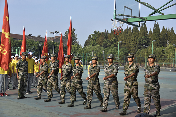 在西校区和城中校区,教官代表薛军和王万笛分别向新生提出了明确的军训要求。承训部队教官进行示范表演,向同学们展示了立正、稍息、停止间转法等军训中的标准动作。团长杨斌宣读了军训团的编制及营、连长名单。