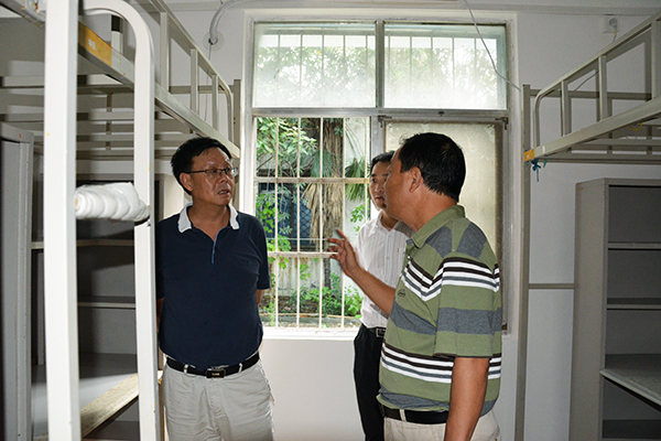 梅平、郭明虎专门查看了新生宿舍,要求施工方精心施工、认真操作,用心做好每一个细节,为广大同学提供温馨、整洁的住宿环境,确保新生顺利入住。