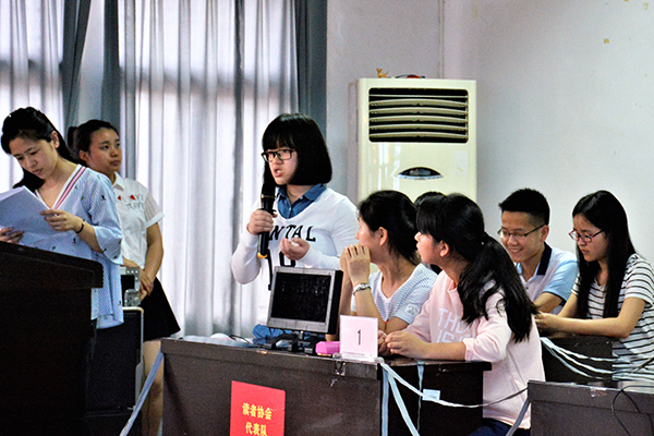 本网讯 (见习记者 鲁洋行) 5月18日,在城中校区,第十一届“泮池五月风”科技文化节之寻找阅读达人活动收官。我院图书馆副馆长让华和近百名学生共同观摩比赛。