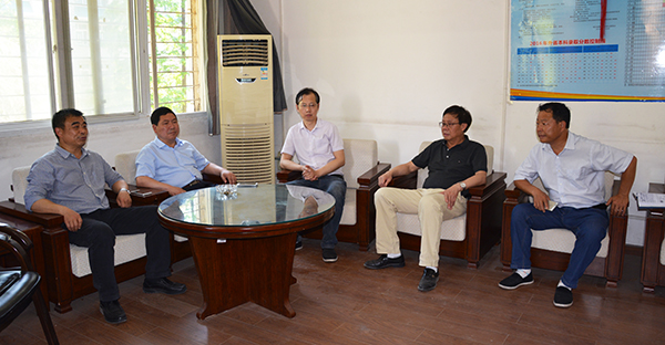周从标(左一)听取梅平(右二)、郭明虎(右)汇报工作