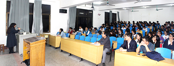 工商管理系全体专任教师以及会计专业2015级全体学生聆听报告。