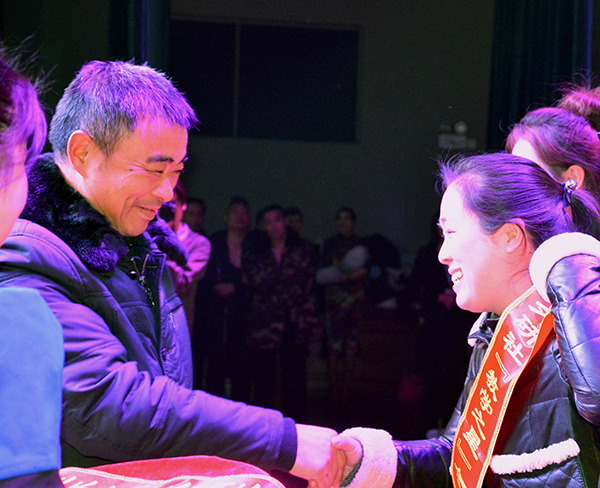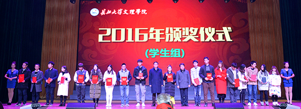 周从标,梅平、王金琼,分别为2016年在全国各级各类竞赛中获奖的学生代表和教师颁奖。