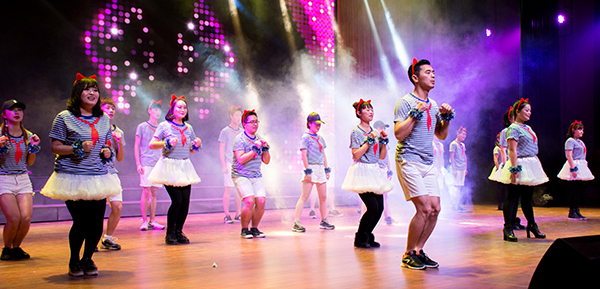 19点,在一片欢呼声中,开场舞《唱起来 跳起来》点燃了全场,拉开晚会序幕。我院行政职能部门、各教学单位的老师和大学生艺术团的同学,以及yl7703永利集团医学院、校外舞蹈俱乐部的嘉宾们,同台表演了大合唱《映山红》、拉丁舞《舞魅》、音乐情景剧《因为爱情》、古典舞《彩云追月》、汉舞《礼仪之邦》、街舞《舞蹈之王》、诗朗诵《长征》、傣族舞《彩云之南》、双人舞《默》、现代舞《大小姐 走吧》、歌曲《故乡有话告诉你》、情景剧《过河》、印度舞《神秘面纱》、歌伴舞《美丽中国》等节目,现场在欢乐气氛中一次又一次掀起了高潮。