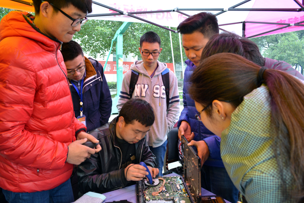 3月5日,由机电与信息工程系团总支组织开展的电脑义务维修活动在西校区12舍前的篮球场举行。由20余名青年志愿者组成维修队,为同学们提供机箱清理、病毒杀除、重装或优化系统、电脑常见故障排除及硬件故障判断等服务。活动一开始就引起了大批同学的关注,在得知本次活动免费服务后十分高兴,很多同学拿来自己有问题的电脑来到场地“寻医问诊”。当天,前来进行电脑问题咨询、电脑维修的同学达到了近百人次。