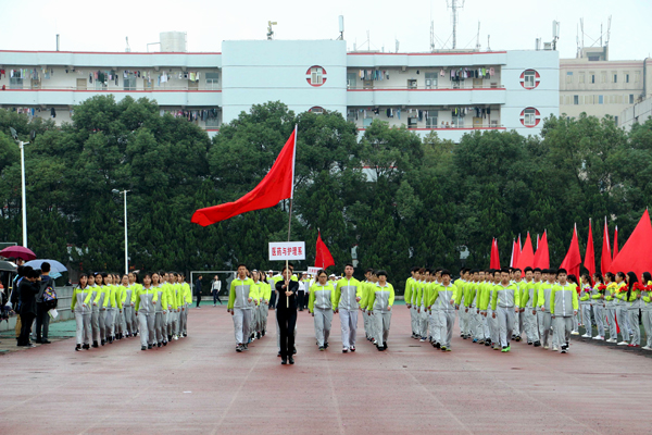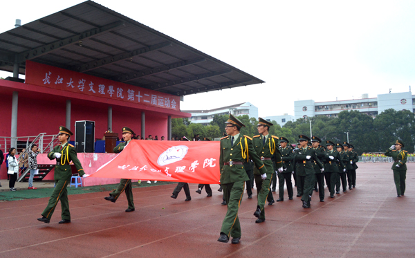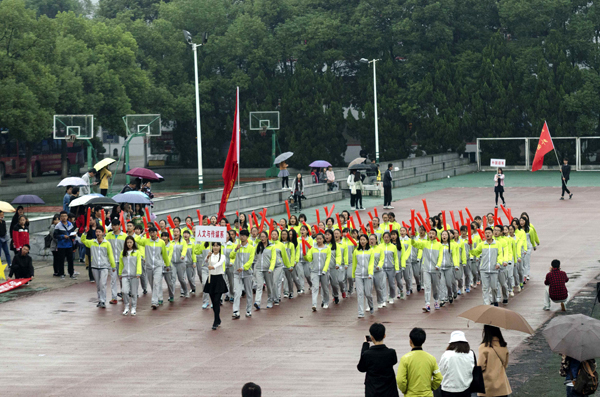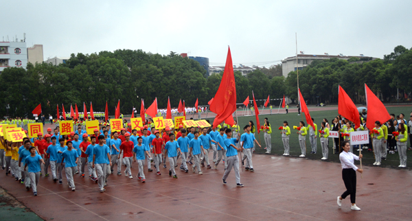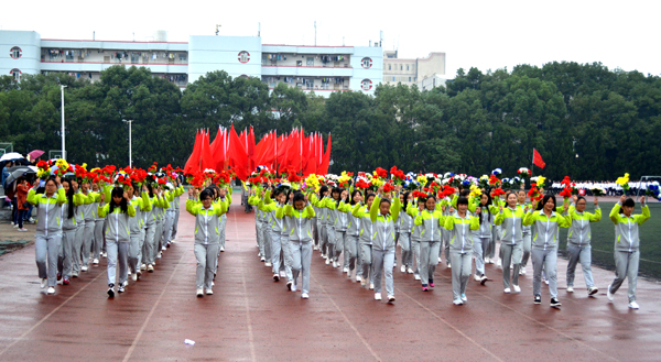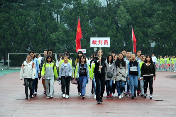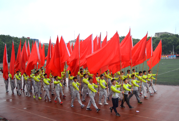 本网讯(记者 吴秀丽)10月23日上午,在我院第十二届运动会开幕式上,由院国旗护卫队组成的国旗方阵和院旗方阵、由医药与护理系学生组成的鲜花方阵、由机电与信息工程系学生组成的红旗方阵、由师生代表组成的裁判员方阵以及7个系部运动员方阵依次亮相。