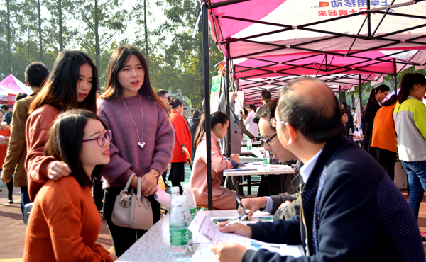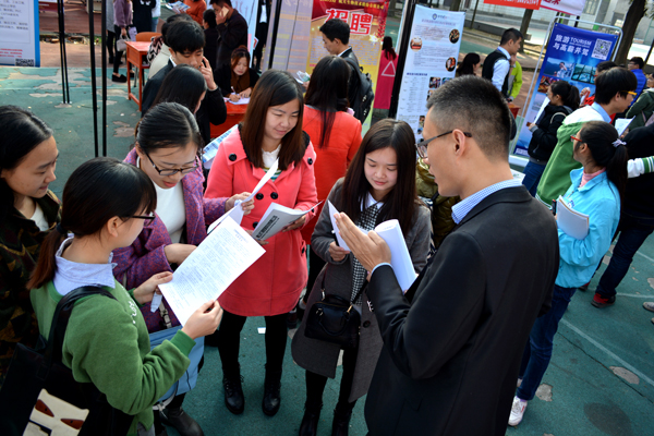 在招聘现场的每个展台前,都立起大幅招聘信息展板,列明企业简介、招聘岗位、招工人数等信息。前来应聘的毕业生认真阅读招聘信息,遇到感兴趣的,便上前询问岗位要求、待遇等情况。人力资源管理专业毕业生薛会芳,想找一份人事管理工作。在南京一家公司设的招聘展台前,她咨询了工资待遇、岗位设置等情况后,在求职人员花名册上登记了信息。