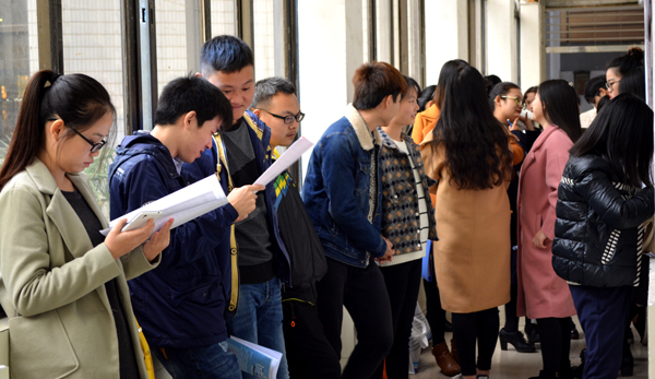 应聘学生认真查看企业用人信息