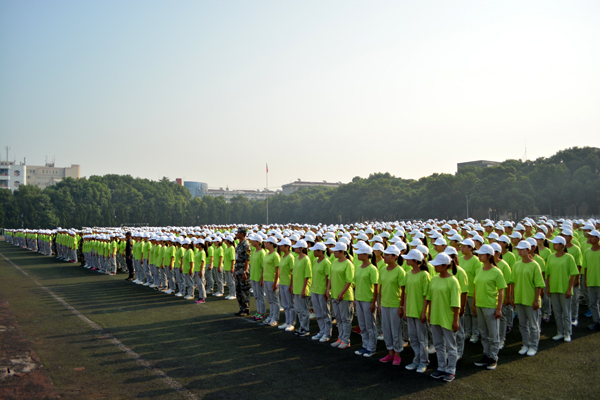 开学典礼开始前,新生纷纷和教官合影,留下美好纪念。