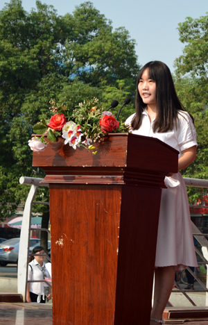 “大浪淘沙,方显真金本色;暴雨冲过,更见青松巍峨!”机电与信息工程系周文芳代表全体教师发言,希望同学们能尽快转换角色,适应环境;学会学习、抓紧宝贵的时间投入学习;积极参加社团与社会实践;学会处理好良好的人际关系;定期给父母打个电话。祝愿同学们能度过快乐的大学生活,放飞梦想、收获成功!