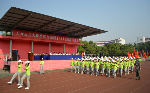 本网讯(记者 吴秀丽)9月22日上午8点30分,我院2016级新生开学典礼在西校区隆重举行,近1800名新生参加了开学典礼。yl7703永利集团党委常委、副校长周从标,我院院长梅平、党委书记王金琼、常务副院长文谟汉、副院长李琴,院长助理曹骥、郭明虎,荆州区武装部副部长杨勇中校,及各教学单位、职能部门负责人、教师代表出席典礼。