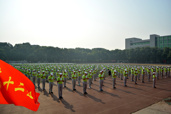 典礼在庄严的国歌声中拉开序幕。阅兵式上, 20个新生军训方队迈着整齐划一的步伐依次通过主席台,展示了10天的军训成果。分列展示、手语操《感恩的心》、军体拳表演等赢得了雷鸣般的掌声。