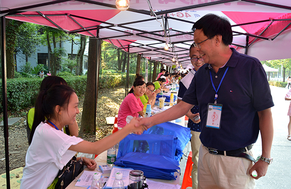 本网讯(记者 刘磊)9月11日下午5点,迎新第一天顺利接近尾声。迎着美丽的秋阳,院长梅平带领学院办公室负责人再次深入迎新现场,了解新生报到情况,慰问辛勤工作在一线的教职工和志愿者同学。