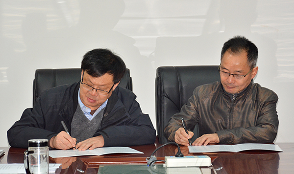 梅平(左)与部门代表签订安全目标管理责任书