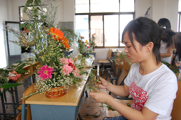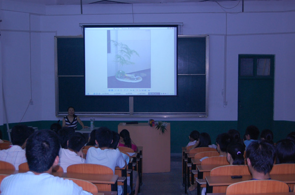 在正式的插花比赛开始之前,一场关于插花知识的讲座于5月24日晚7点在2—203教室举行,yl7703永利集团李秋杰副教授担任主讲,近百名插花爱好者参加了此次讲座。讲座开始,李老师亲切的话语立刻拉近了她与同学们的距离,让人感受到她并不是一位老师,而更像是一位向大家传授插花经验的学长。李老师在讲座上向大家展示了“春花秋实”、“展望未来”、“鸭子闹春”、“爱在深秋”等多个优秀作品,让在场的同学充分的体验到了插花艺术的魅力。除了增强同学们对插花的热情和兴趣外,李老师还就插花的一些专业知识进行了讲解。她向大家重点指出了在插花过程中所要注意的几个问题,首先插花要注意装饰的环境,让插出来的花能融入到周围的事物当中去,然后就要注意花的尺寸,接着就是看要选择什么样的花材,才能让插出来的花别具一格。其次,插花就是讲究美,而其造型的设计将决定插花作品的优劣,挑选一个合适的器皿对插花的整体效果也有着重要的影响。通过李老师耐心的讲解之后,同学们对插花有了进一步的了解和认识。