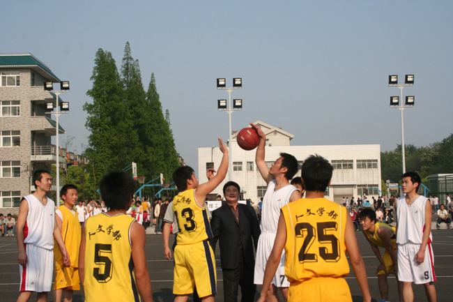 欣赏完篮球宝贝的表演后,学院书记董武郑重宣布第五届“文理杯”篮球联赛正式开始,并由学院副书记汪邦柱同志为本次比赛开球。