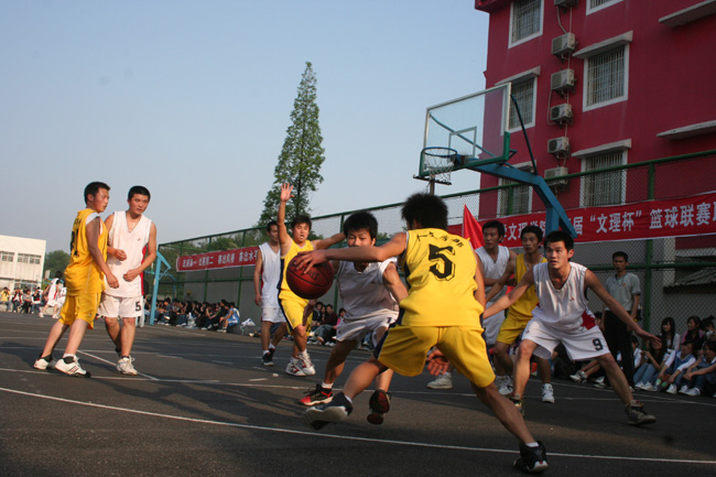 随着裁判员一声哨响,理工学部与人文学部开始了本届联赛的揭幕战。双方球员你争我夺、积极拼抢,展现出来了球员们努力拼搏、顽强奋斗的精神风貌,充分体现了“比赛第一、友谊第二、赛出风格、赛出水平”的比赛宗旨。球员们一次次突破,一次次上篮,一次次得分,都牵动着在场的同学们的心。场内打的热火朝天,场外的同学们也努力为自己的球队摇旗呐喊,赛场上的火爆与场外的激情将这次篮球联赛一次次推向高潮。