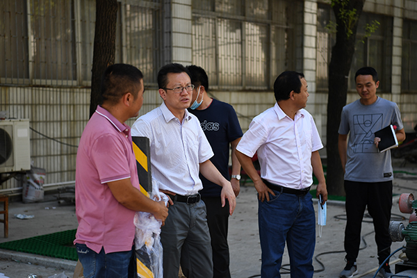本网讯(记者 刘磊)今天(9月2日),院长王文凯、党委书记朱继平、副院长尹家经、党委副书记孙细望、院长助理郭明虎带队深入现场,检查校园维修改造收尾工作。