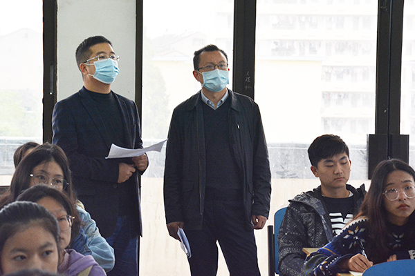 本网讯(记者 刘磊)今天(10月5日)上午,院长王文凯带领教务处相关负责人深入2020级本科新生班级课堂,检查开学教学工作。
