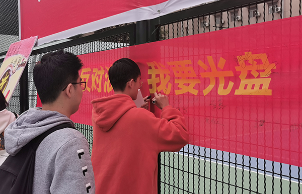 本网讯(通讯员 辛裕)11月4日至8日,机电与信息工程系团学组织在西校区12舍篮球场前开展为期5天的“我要光盘 拒绝‘剩宴’”签名活动。