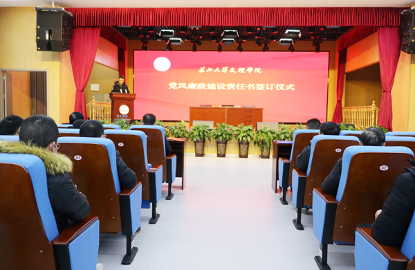 本网讯(记者 周芳)今天(12月17日)下午,学院党风廉政建设责任书签订仪式在多功能报告厅举行,学院党委与院领导班子成员、各院(系、部)主要负责人以及各职能部门负责人分别签订了党风廉政建设责任书,党委书记朱继平作总结讲话,党委副书记孙细望主持会议。