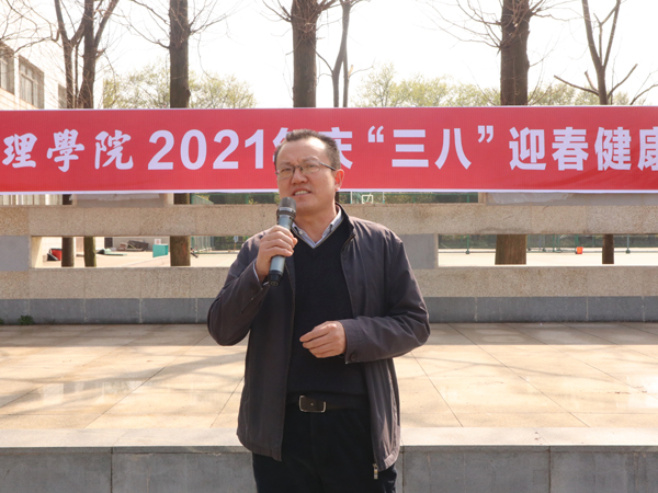 在活动启动仪式上,学院领导王文凯、朱继平、尹家经、康建虎、孙细望、曹骥、郭明虎及各工会小组的百余名女教职工欢聚一堂。孙细望代表学院向全体女教职工们致以节日的问候,并鼓励大家坚持锻炼身体,缓解心理压力,保持身心健康,以更好的精神状态投入到工作和生活中。王文凯宣布健步行活动正式开始。