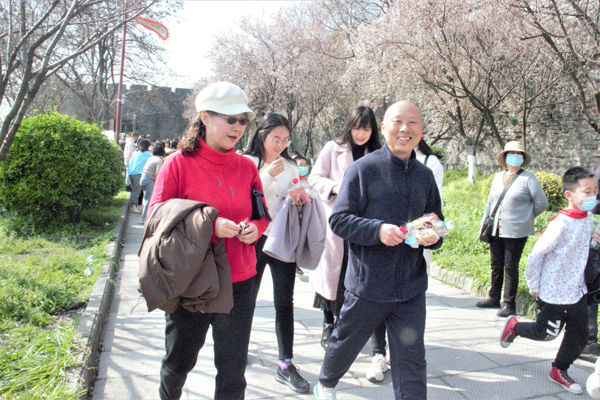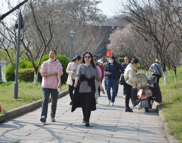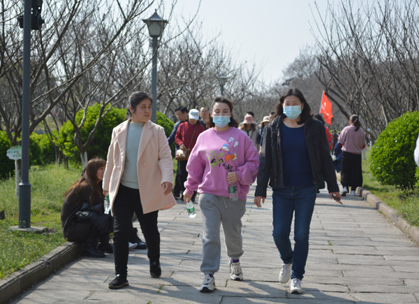 本网讯(记者 周芳)阳春三月,春意盎然。3月4日下午,学院2021年“庆三八”迎春健康行活动火热开启。百余名女教职工沿着古城墙,沐春风,健步行。