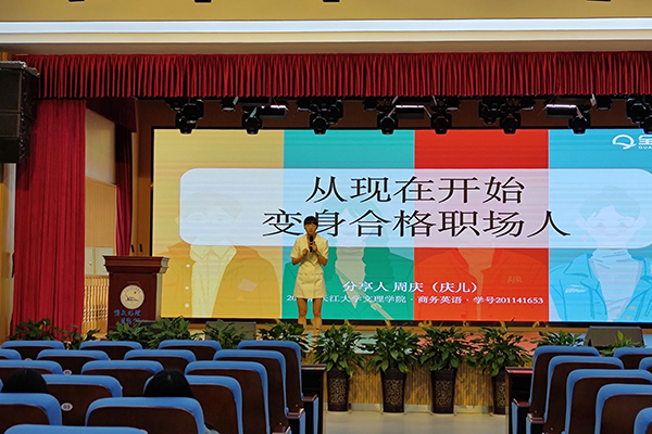本网讯(通讯员 赵欣雨)近日,外国语学院在城中校区多功能报告厅举办优秀校友主题讲座,2011届校友周庆以“从现在开始,变身合格职场人”为题作讲座,外国语学院师生代表近两百人现场聆听。