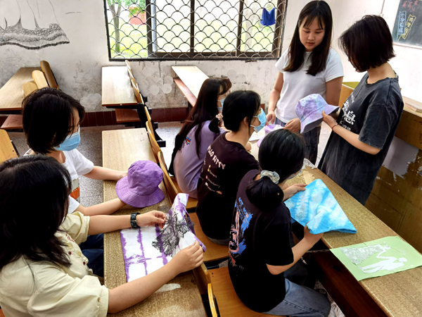本网讯(记者 周芳 通讯员 关莉红)“同学们,在衣服上进行扎染一定要注意色彩搭配和色系统一。”5月31日,人文与传媒学院黎雪老师正在给2020级学生上课,这也是该系落实相关文件精神,结合老师专业背景开展的一堂劳动教育实践课。