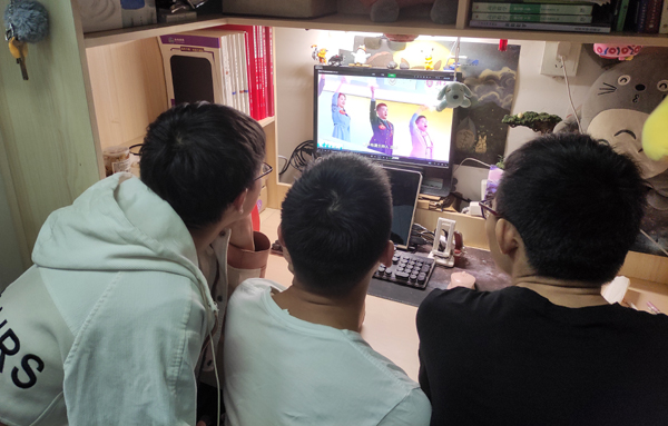 直播开始,同学们通过观看党史知识竞答、红色歌舞表演及红色影视片段,聆听教授们的精彩解析和先辈们的革命故事,重温党的光辉历史。在观看党史竞答环节时,同学们相互交流,相互学习,在紧张激烈的比拼中提升自身党史知识水平。