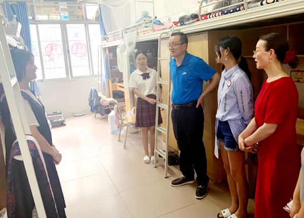 本网讯(记者 周芳)6月15日晚,学院领导王文凯、康建虎、孙细望、曹骥、郭明虎分别带队深入学生寝室,看望慰问2021届毕业生,为学生们送上诚挚的毕业祝福。