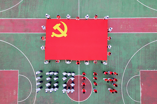 在消防救援大队门前,全体党员面对鲜红的党旗,高举右拳,重温入党誓词。在大队会议室,经济与法学系党总支副书记杨杉杉面向消防指战员和一批经法系大学生志愿者讲党课,加深大家对党史和新中国史的了解。讲课结束后,指战员和学生共同做手工,用大米拼成党徽、用粘土捏制党旗,在艺术体验中抒发爱党爱国热情。
