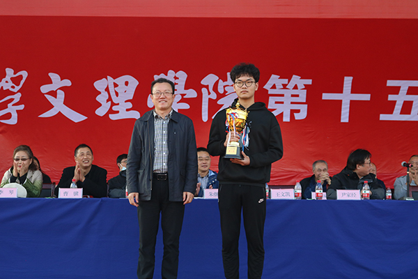 本网讯(记者 刘磊 见习记者 魏栋 邓子轩 程蓉蓉)10月30日下午,我院第十五届运动会闭幕式在西校区运动场举行。来自各院(系、部)12支代表队的449名运动员经过两天的激烈角逐,共决出个人和集体奖23项。机电与信息工程系获男子团体总分第一名,数学与医护系获女子团体总分第一名,数学与医护系获男女团体总分第一名。经济与法学系、人文与传媒学院、外国语学院、管理系获道德风尚奖。